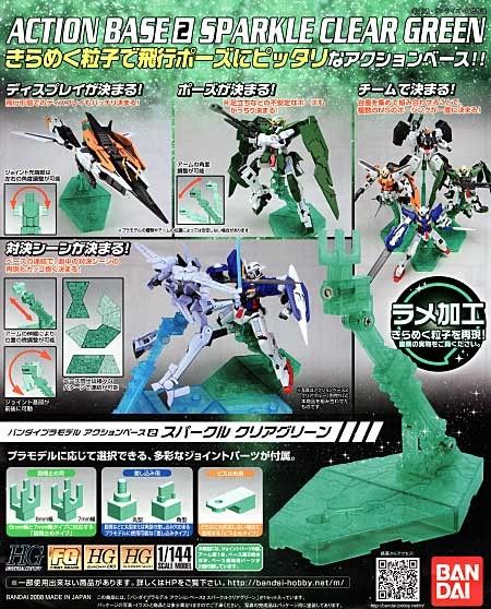 Action Base 2 została zaprojektowana tak, aby pomieścić zestawy z serii HGUC, FG, HG Gundam 00, HG Gundam Seed, modele w skali 1/144 i SD Gundam firmy Bandai. Żadna z podstawek innych firm nie może się równać z tą niesamowitą bazą!