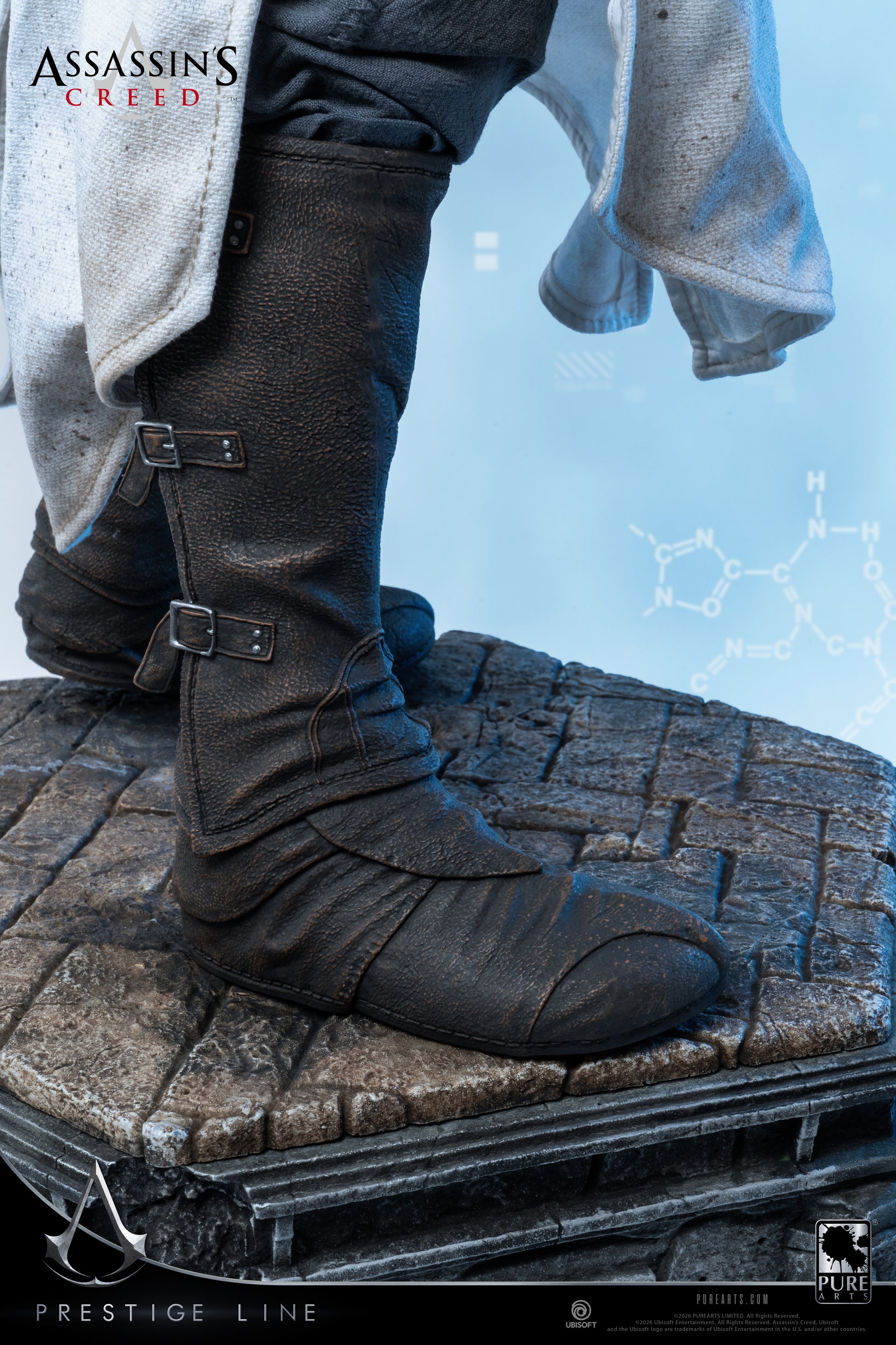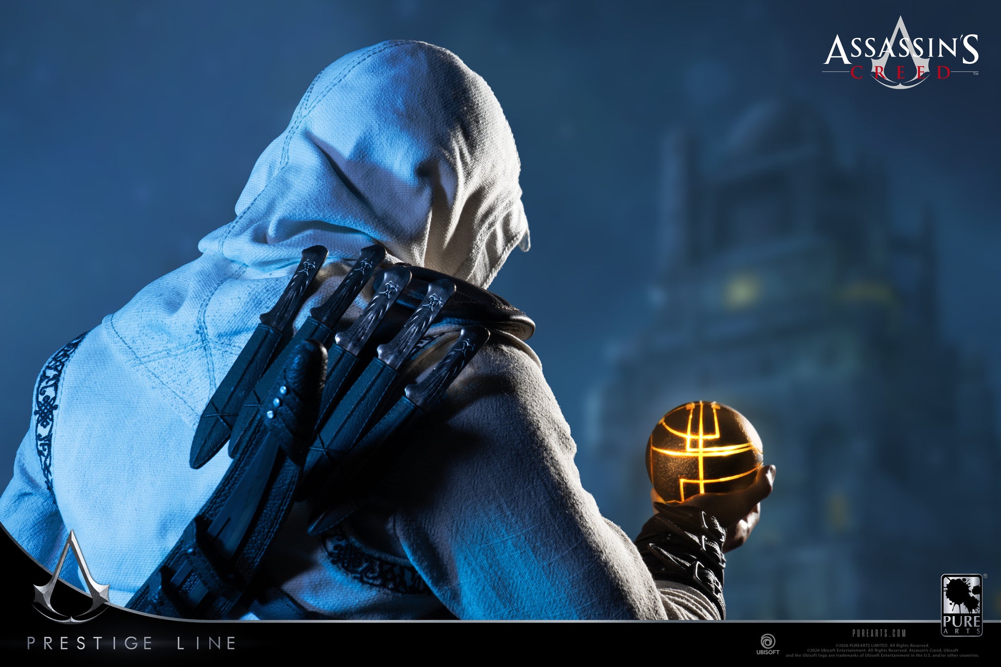 Bohater pierwszej części gry Assassin's Creed powraca do PureArts w idealnej skali 1:2 w serii Prestige Line. Hiperrealistyczna rzeźba głowy została odlana z silikonu i posiada szklane oczy oraz ręcznie wycinane włosy, brwi, rzęsy i zarost, nadając całej figurze niezwykle realistyczny wygląd. Dzięki ręcznie szytym ubraniom, wypolerowanej metalowej broni i akcentom, ręcznie szytej prawdziwej skórze, podświetlanemu diodami LED Jabłku Edenu oraz wysokości ponad 90 cm, jest to idealny przedmiot kolekcjonerski dla fanów Assassin's Creed.