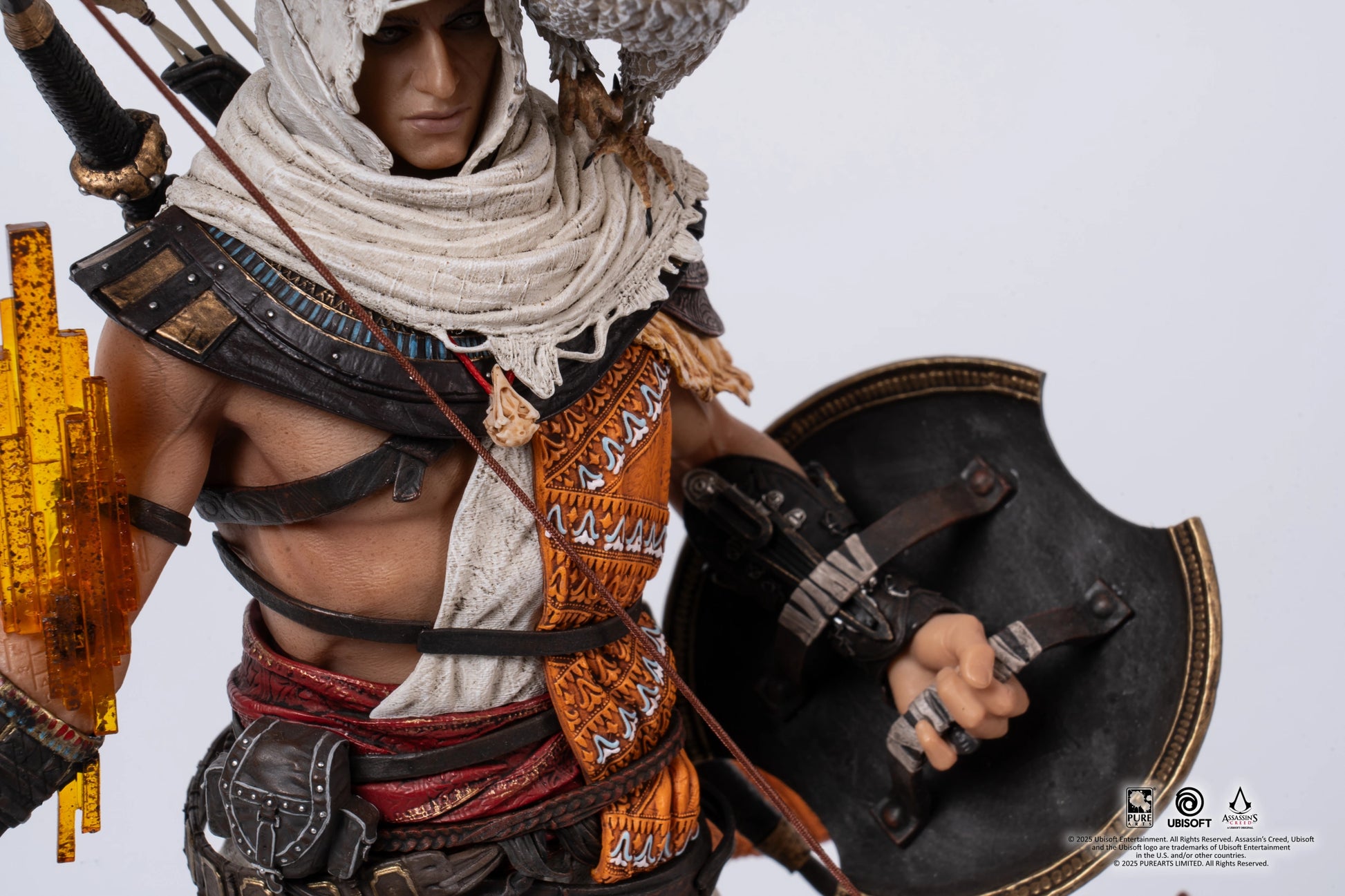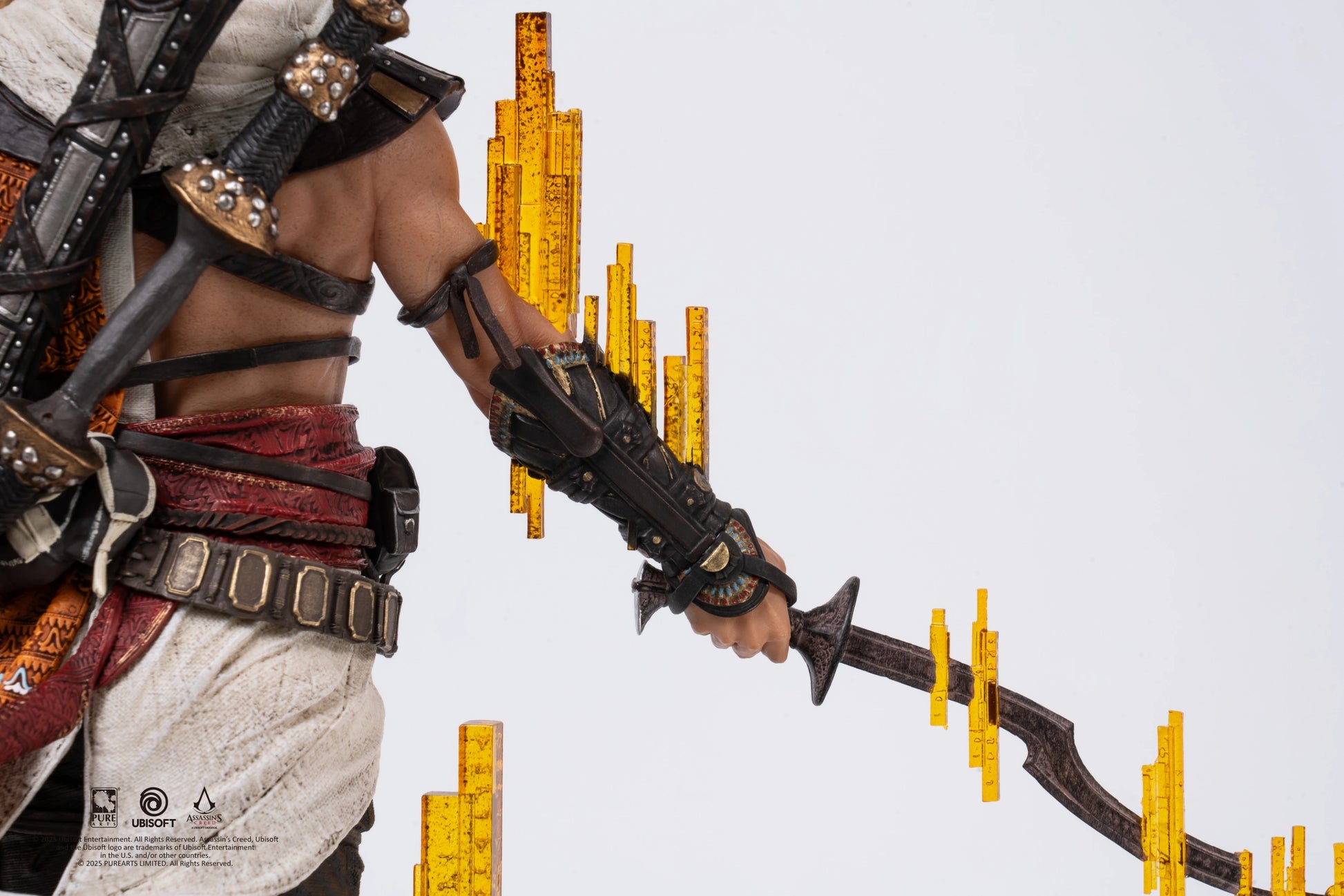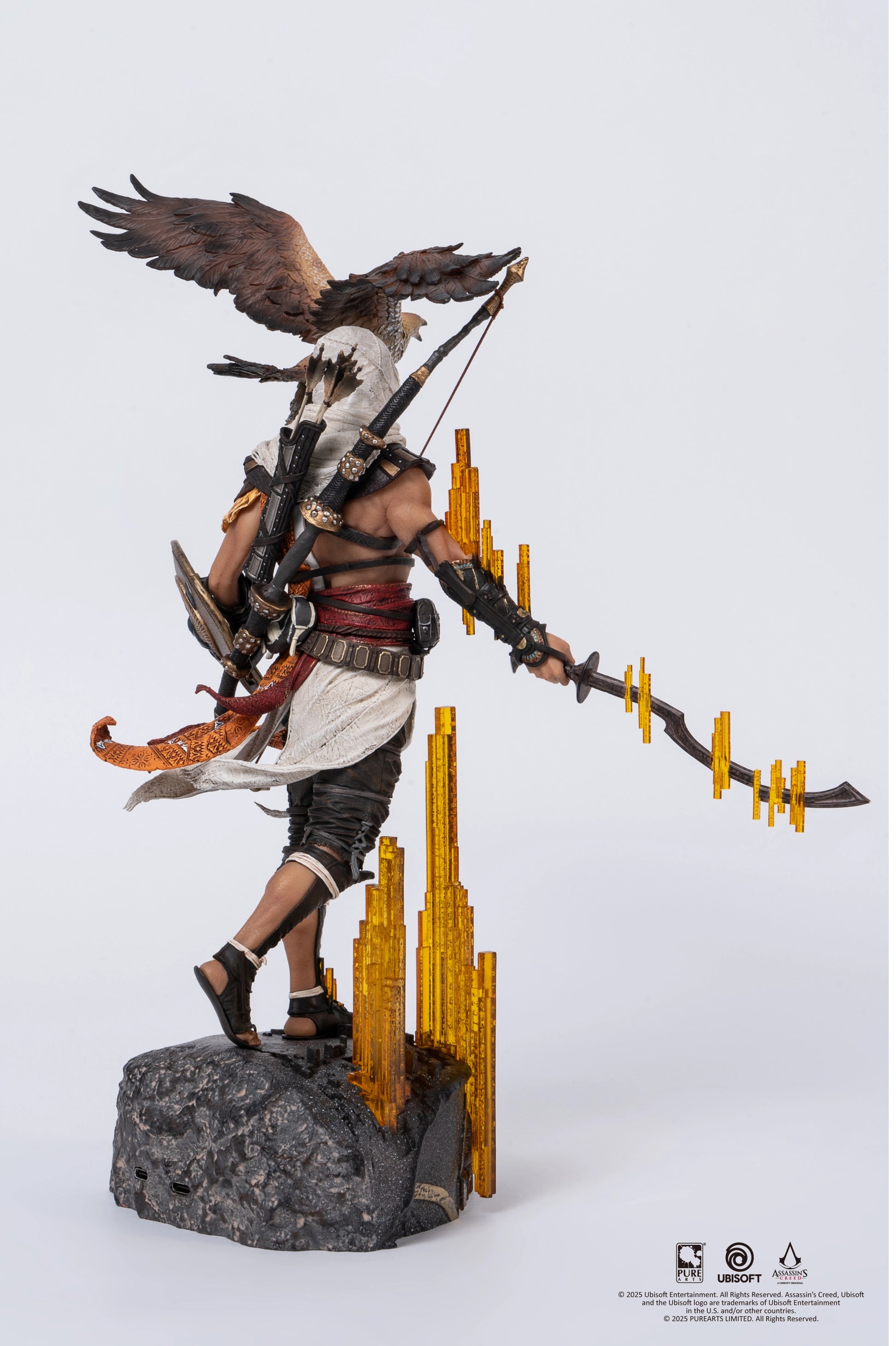Bohater Assassin's Creed Origins i współzałożyciel Ukrytych, Bayek z Siwy jest wyposażony w swój Khepesh i tarczę na szczegółowej podstawie inspirowanej orłem. Jego wierny orli towarzysz, Senu, jest w pobliżu. Z lewej strony Bayeka materializuje się kwintesencja efektu animus-LED PureArts, reprezentująca pomost między przeszłością a teraźniejszością. Mierząca 11 cali wysokości statua Animus Bayek 1/8 Scale Statue to idealny rozmiar dla każdego fana serii Assassin's Creed!