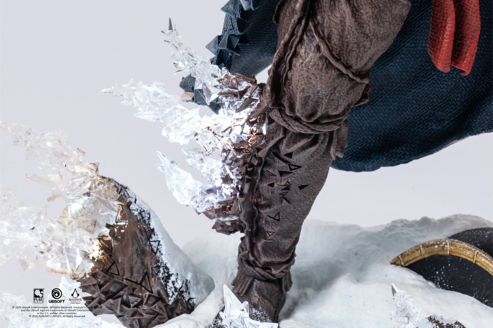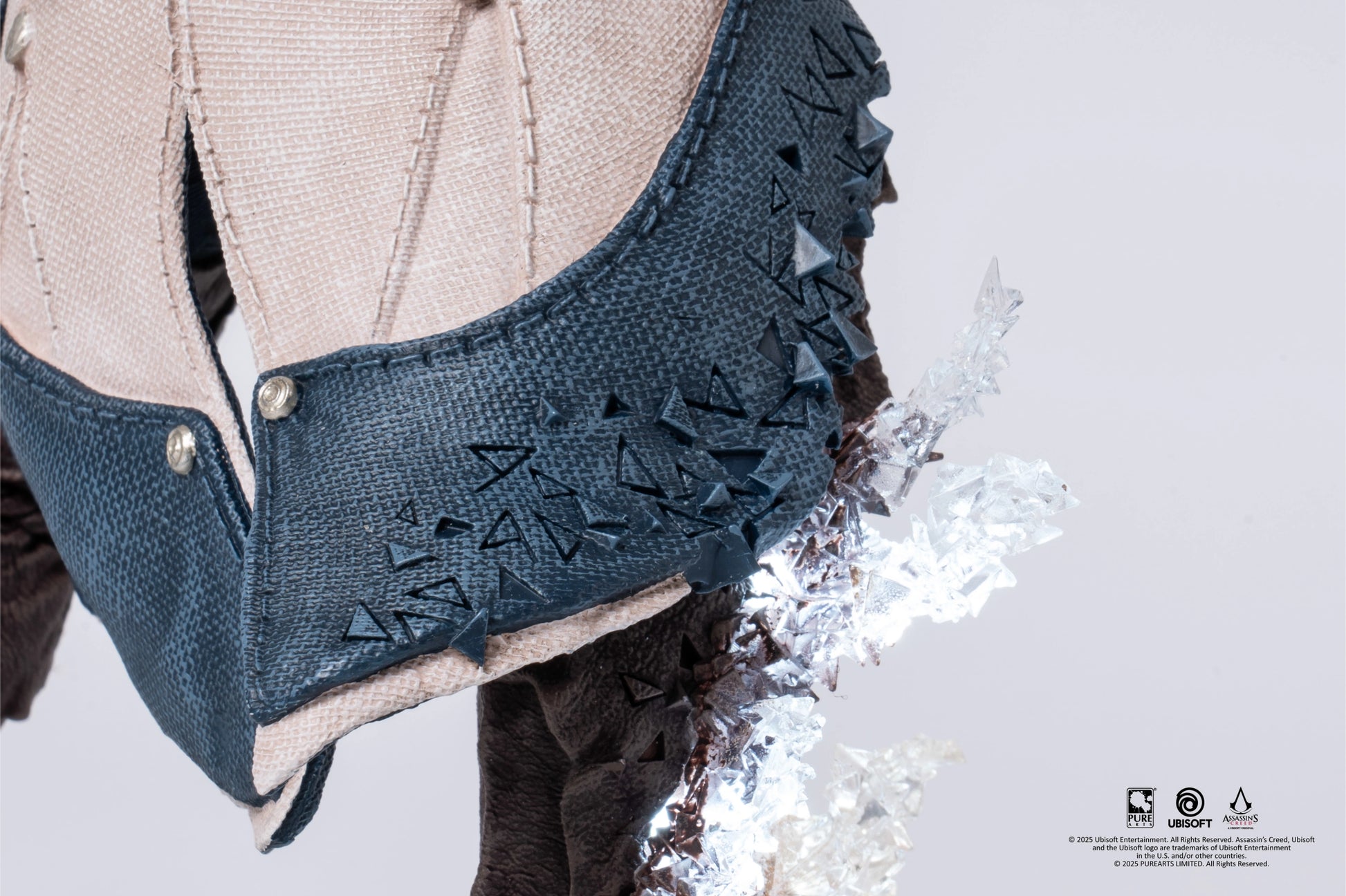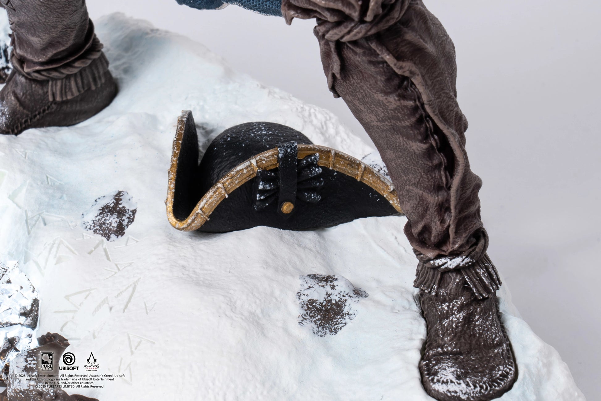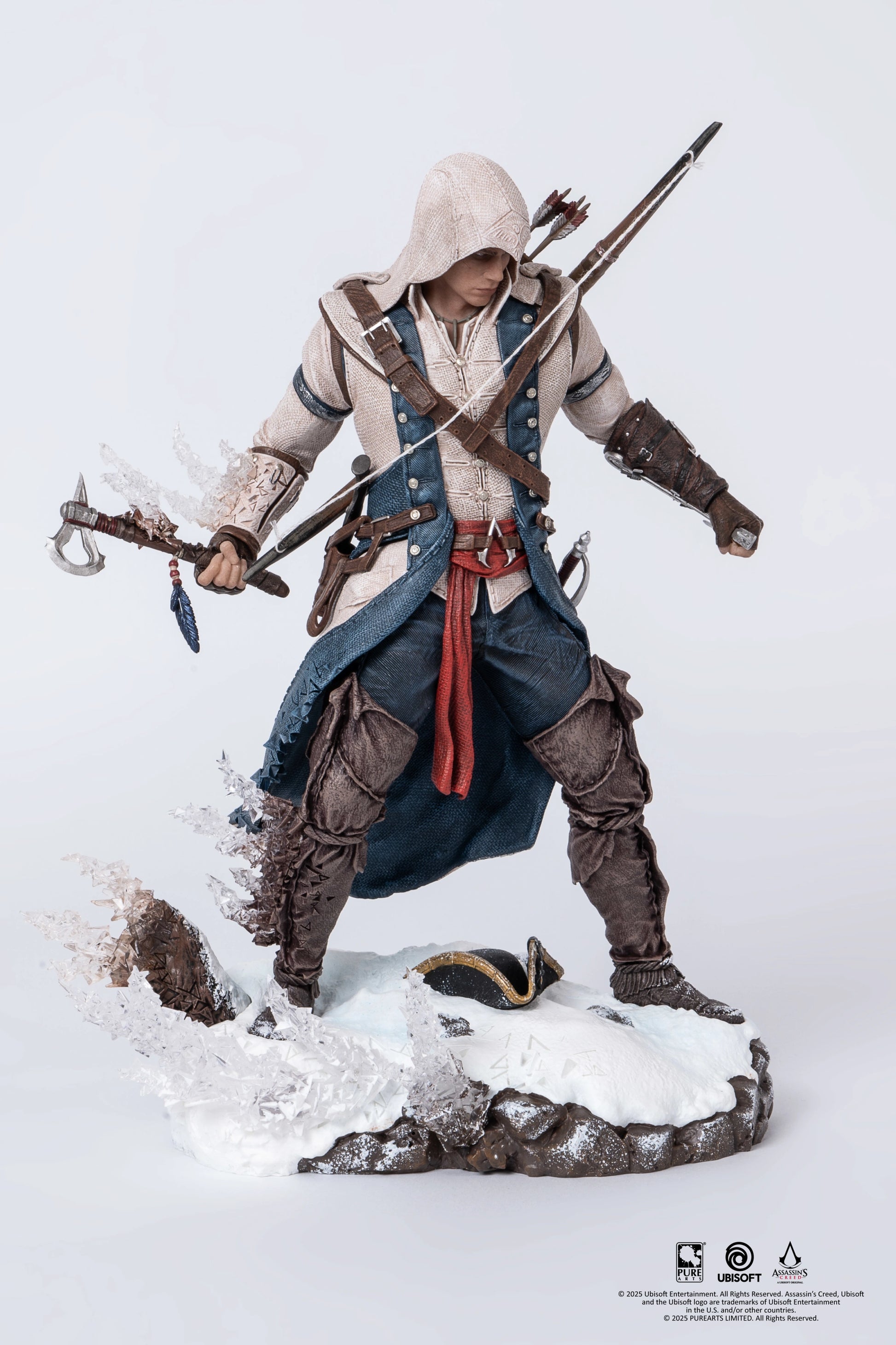 Bohater Assassin's Creed III, Connor, jest gotowy do walki w zaśnieżonym amerykańskim lesie, z tomahawkiem w dłoni i czapką poległego brytyjskiego żołnierza u stóp. Kwintesencja efektu animus-LED PureArts, reprezentującego pomost między przeszłością a teraźniejszością, materializuje się po lewej stronie Connora. Mierząca 11 cali wysokości statua Animus Connor 1/8 Scale Statue to idealny rozmiar dla każdego fana Assassin's Creed!