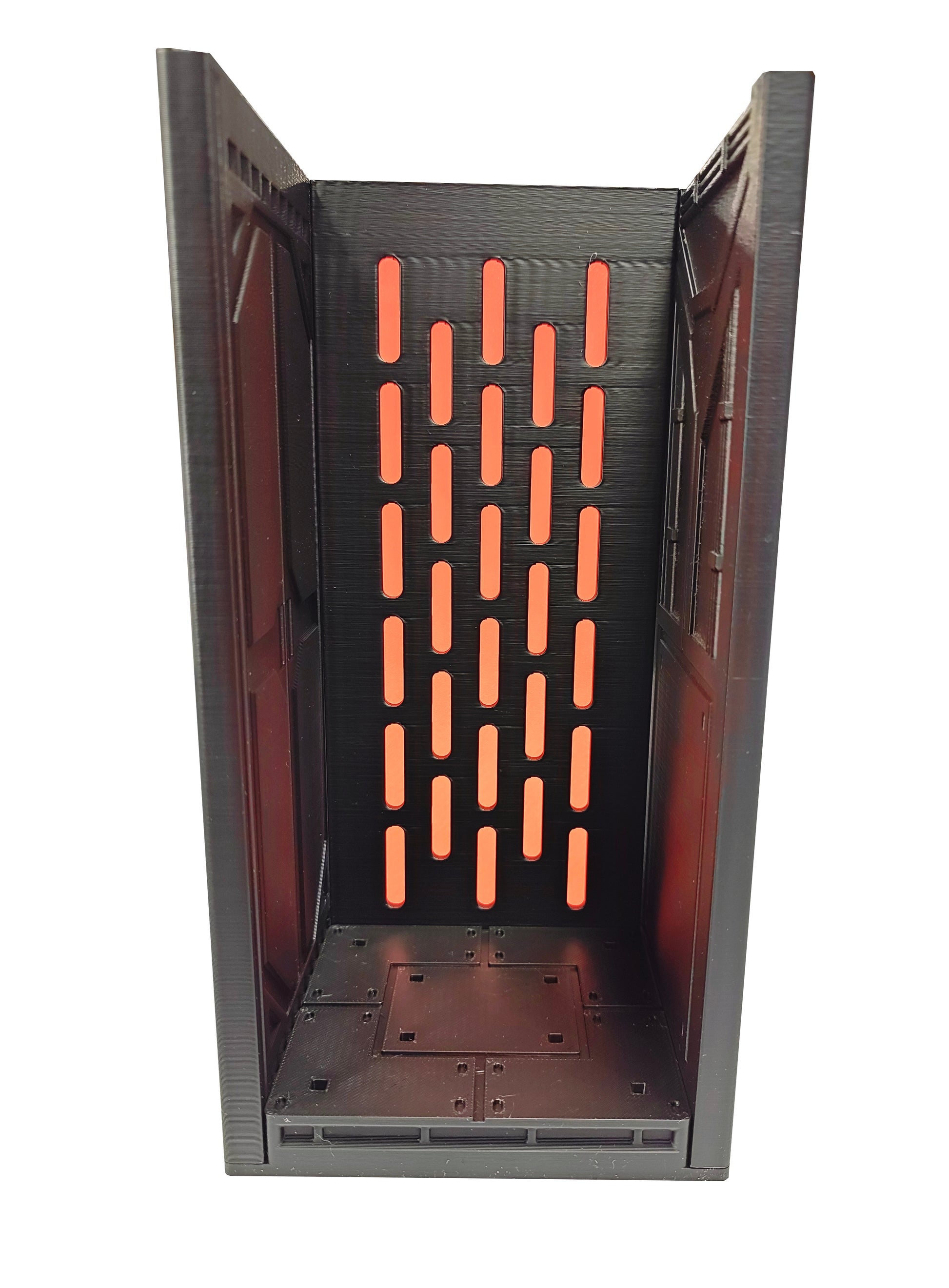 Model został wykonany w technologii druku 3D z wytrzymałego, ekologicznego materiału PLA, który gwarantuje trwałość i estetyczny wygląd. Projekt łączy w sobie funkcjonalność i nowoczesny design – minimalistyczny, ale z pazurem, idealnie dopasowany do ekspozycji figurek zarówno na półce, jak i w gablotce.