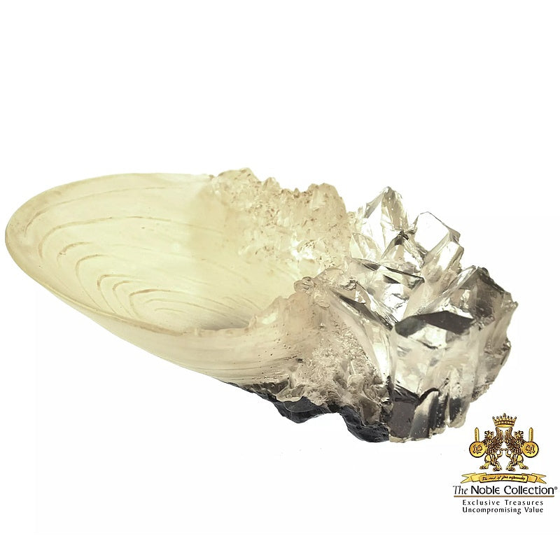 - Odlany z żywicy oraz z przezroczystego lucitu. Posiada malowane wykończenie z masy perłowej w podstawie naczynia