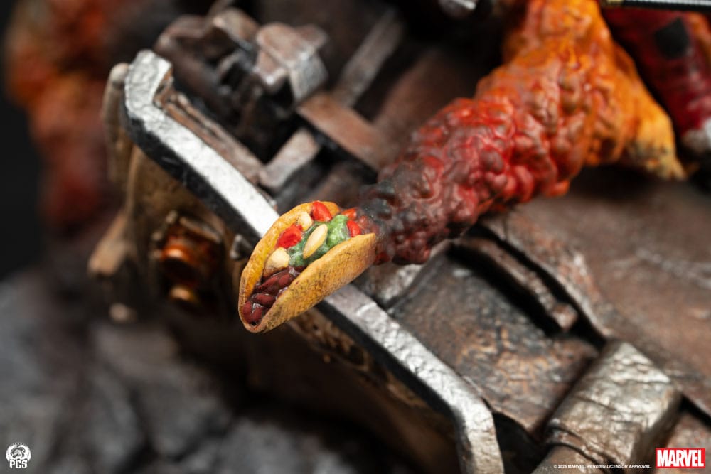 - Ta w pełni wyrzeźbiona diorama przedstawia kolekcję " Pools" wyłaniających się z ogromnej eksplozji Taco-truck w centrum akcji. Kilku członków niesławnego Korpusu Deadpoola jest tu reprezentowanych, w tym Ladypool, Kidpool i Headpool, a sam Deadpool kroczy naprzód z zaufanym starym Dogpoolem u boku. Każda postać jest fachowo wyrzeźbiona i pomalowana, aby uchwycić emocje tych ulubionych przez fanów postaci
