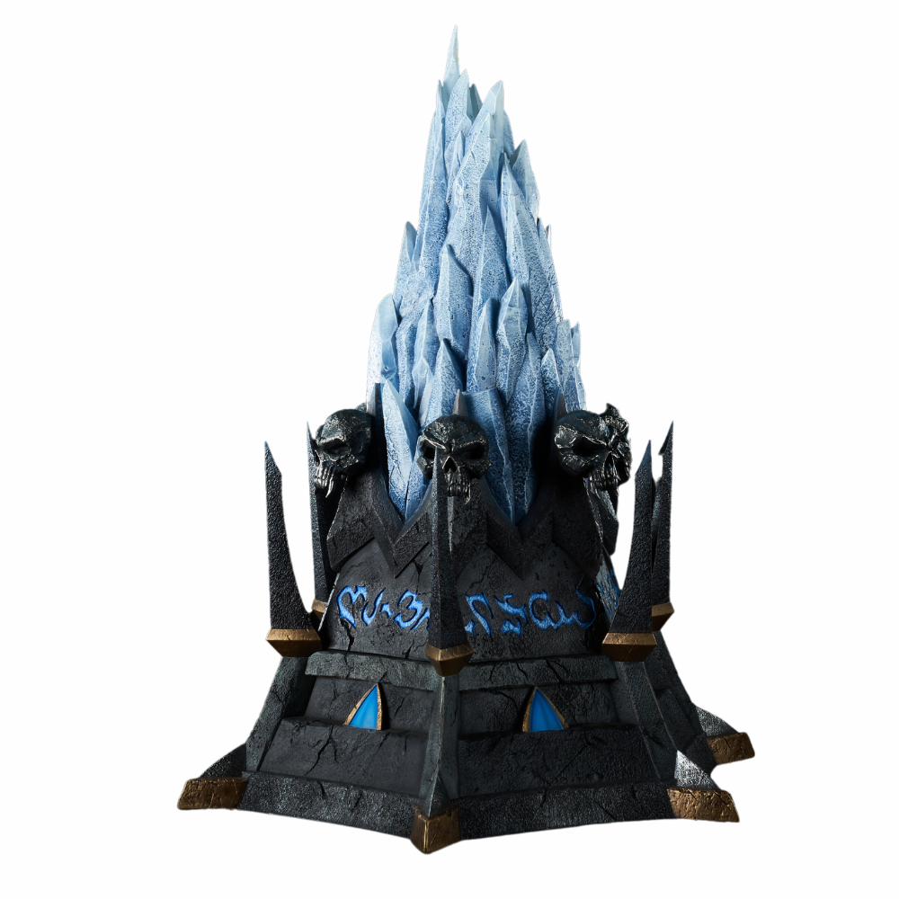 Frostmourne to jedna z najbardziej legendarnych broni w uniwersum Warcraft, a jej pedestal, na którym znajduje się w grze Warcraft III: Reign of Chaos i w World of Warcraft, ma ogromne znaczenie zarówno fabularne, jak i symboliczne. Miecz, który nie tylko może zabić, ale także przyciąga dusze swoich ofiar, został stworzony przez starożytnych bogów jako narzędzie woli. Pedestal, na którym spoczywa Frostmourne, znajduje się w zamku Dalaran w Warcraft III, a później w Naxxramas w World of Warcraft, co podkreśla jego kluczową rolę w historii Lich Kinga. Kiedy Arthas Menethil, przyszły Król Lisz, zabiera miecz, jego życie zmienia się na zawsze, a jego dusza zaczyna podlegać władzy narzędzia zniszczenia. Frostmourne nie tylko daje ogromną moc, ale także stopniowo korumpuje swojego właściciela, co jest jednym z głównych wątków w historii Arthasa. Pedestal stanowi więc nie tylko fizyczne miejsce przechowywania miecza, ale i symbol początku upadku Arthasa, który z heroicznego księcia zamienia się w bezlitosnego władcę nieumarłych.