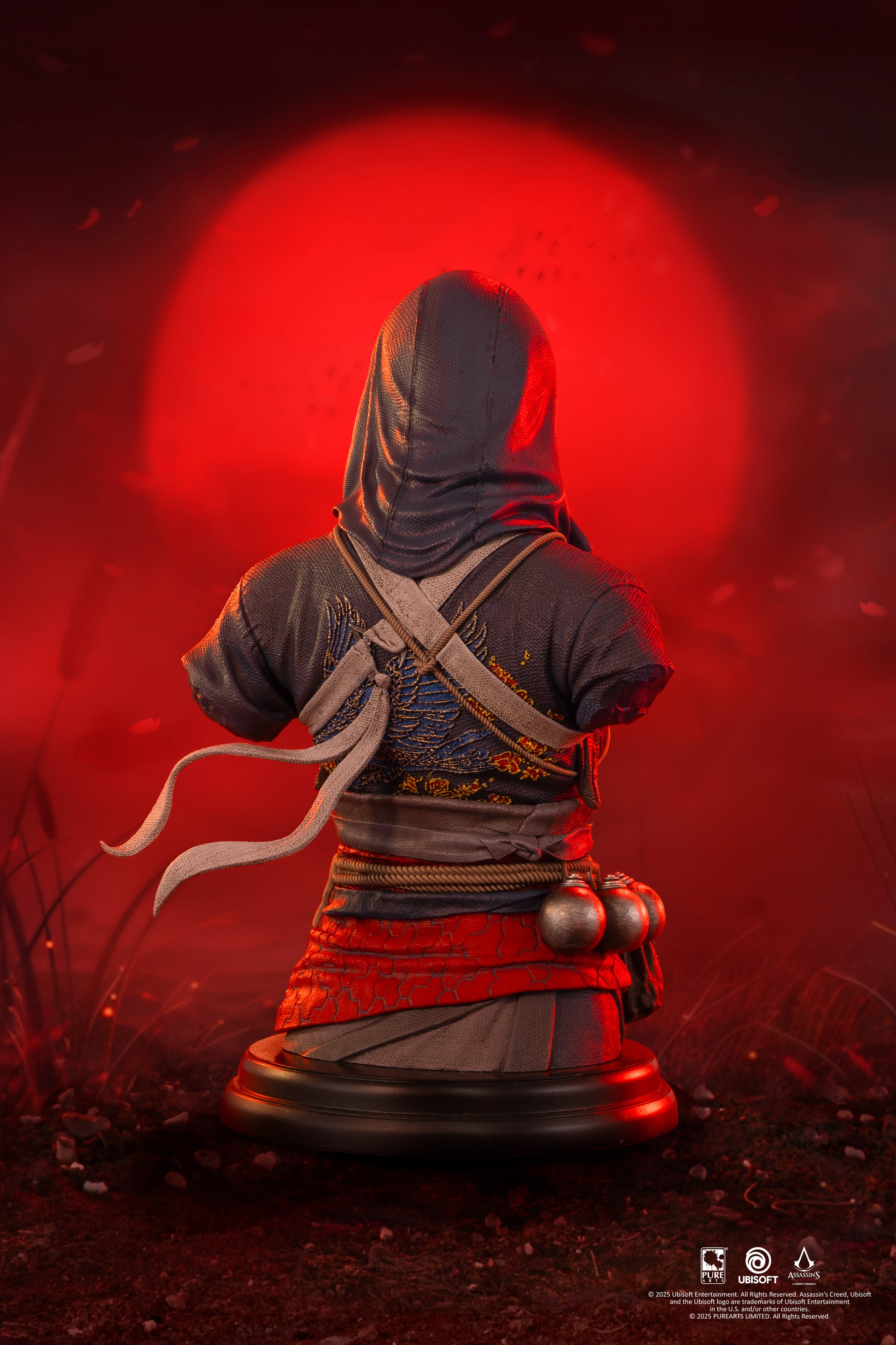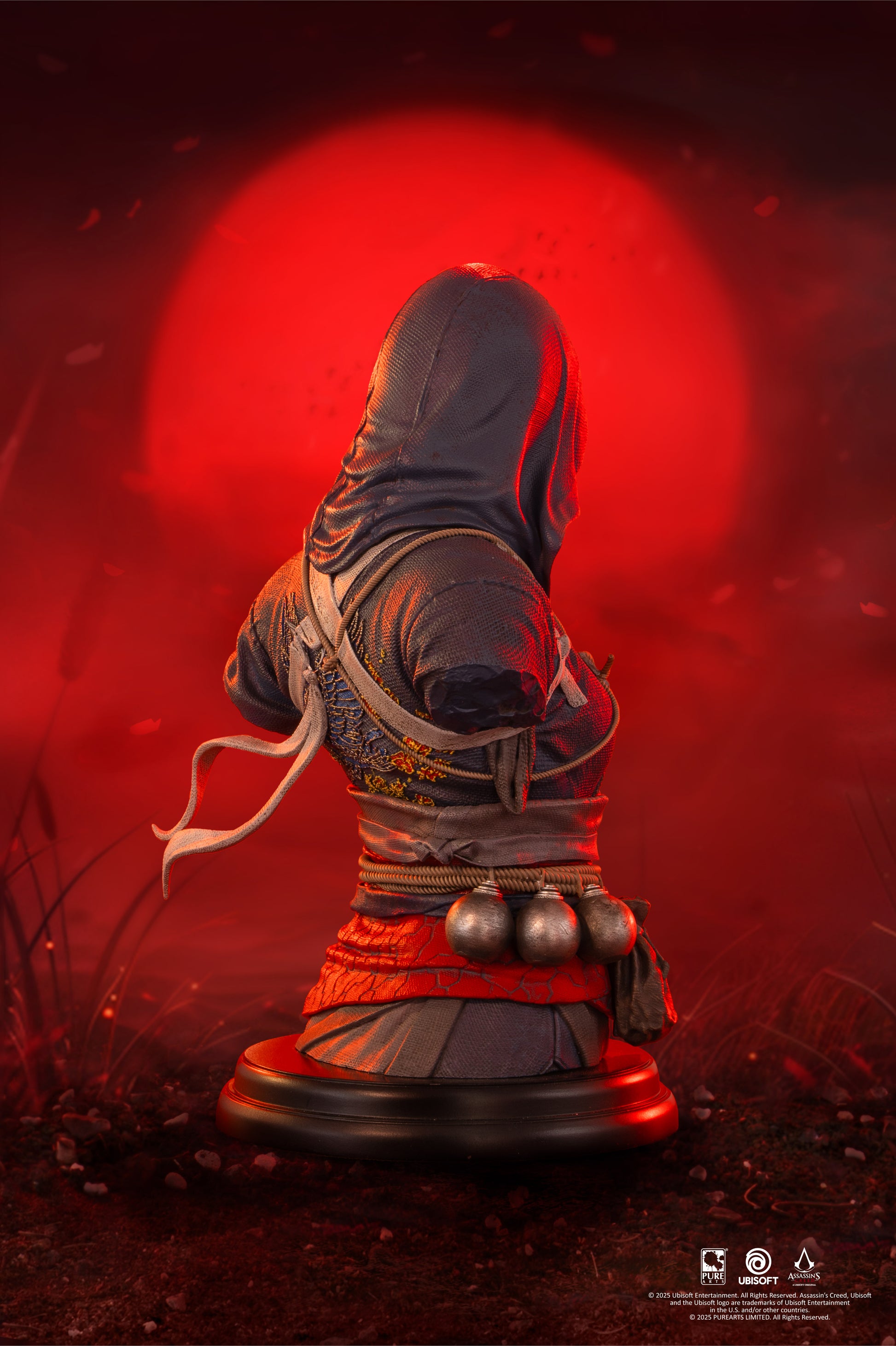 - Nieustraszona zabójczyni Naoe jest gotowa bronić swojego ludu i zapoczątkować nową erę dla Japonii. Popiersie oddaje jej determinację i zaciętość. Jej tradycyjny strój shinobi jest fachowo wyrzeźbiony, a na plecach widnieje godło jej klanu, symbol jej dziedzictwa i niezachwianej lojalności.